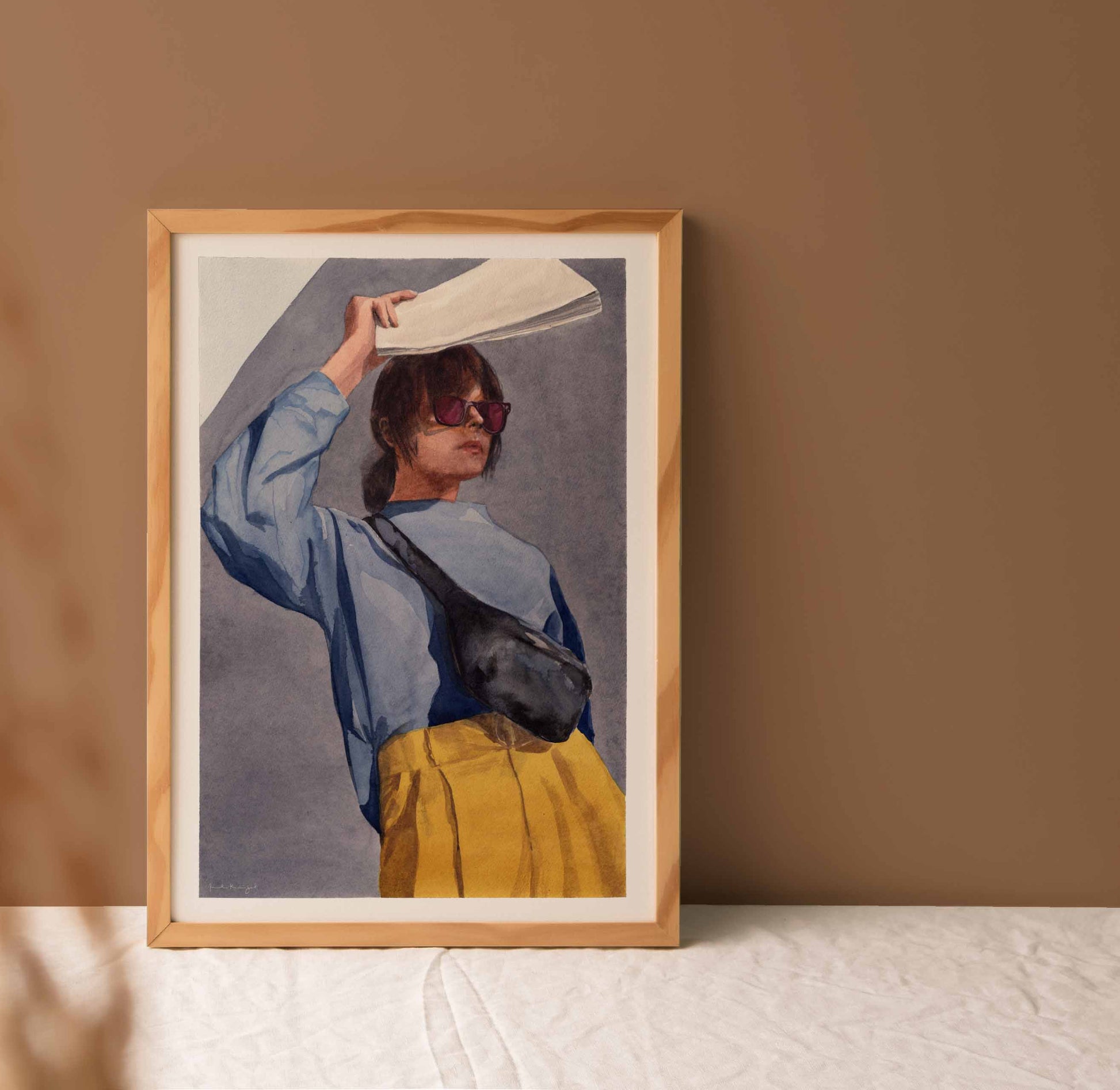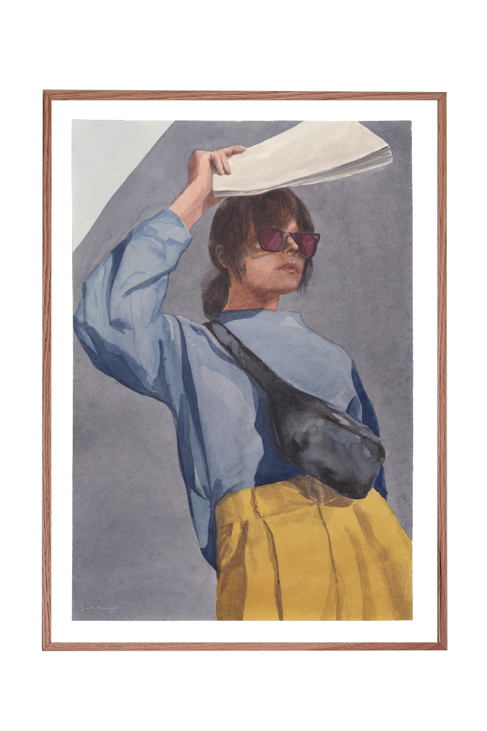 I Skygge  er malet med akvarel på papir. motivet er i rolige toner med en kombination af akvarel og botanisk blæk.