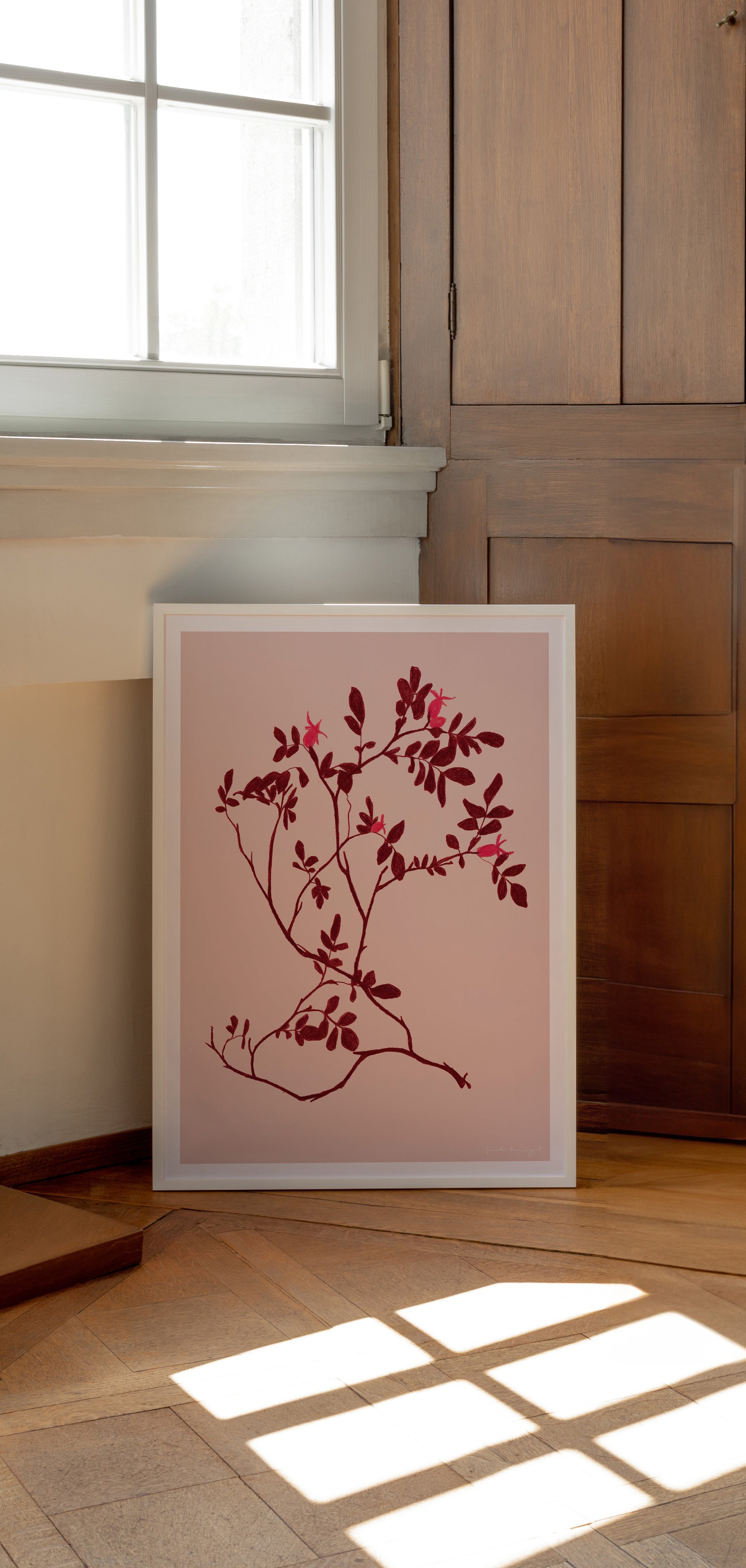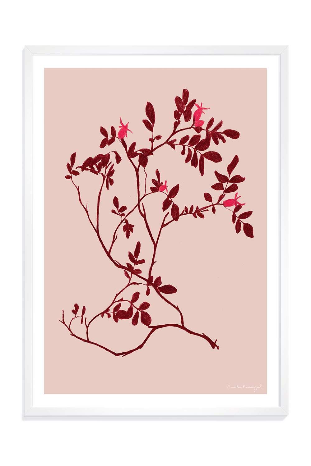Klitrose No2 er en del af en lille serie af naturmotiver.  Hvert motiv er en hilsen til den danske natur, hvor vindens susen, fjordens ro og markernes åbne vidder bevares på papiret. Med omhu og inspiration fra vores smukke omgivelser har jeg forsøgt at fange naturens ro og skabe kunstværker, der bringer den ind i dit hjem.