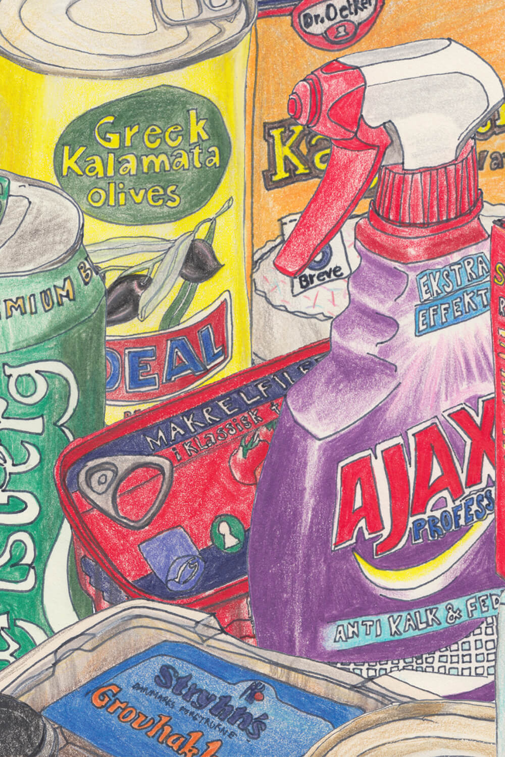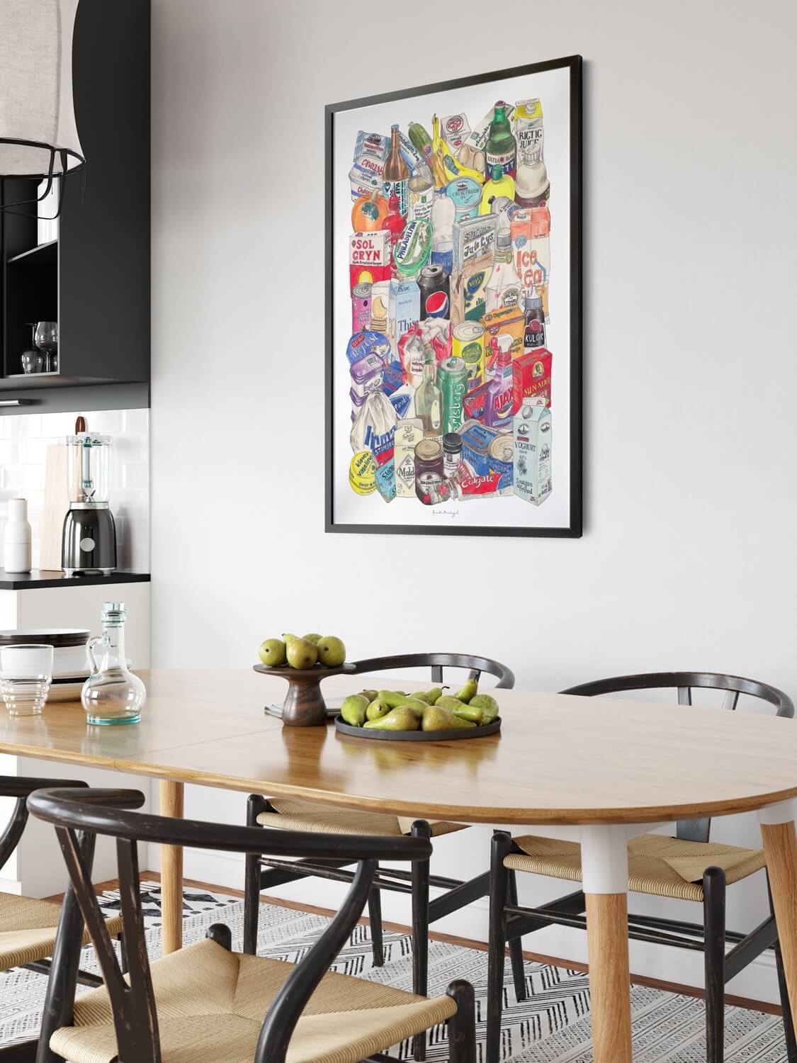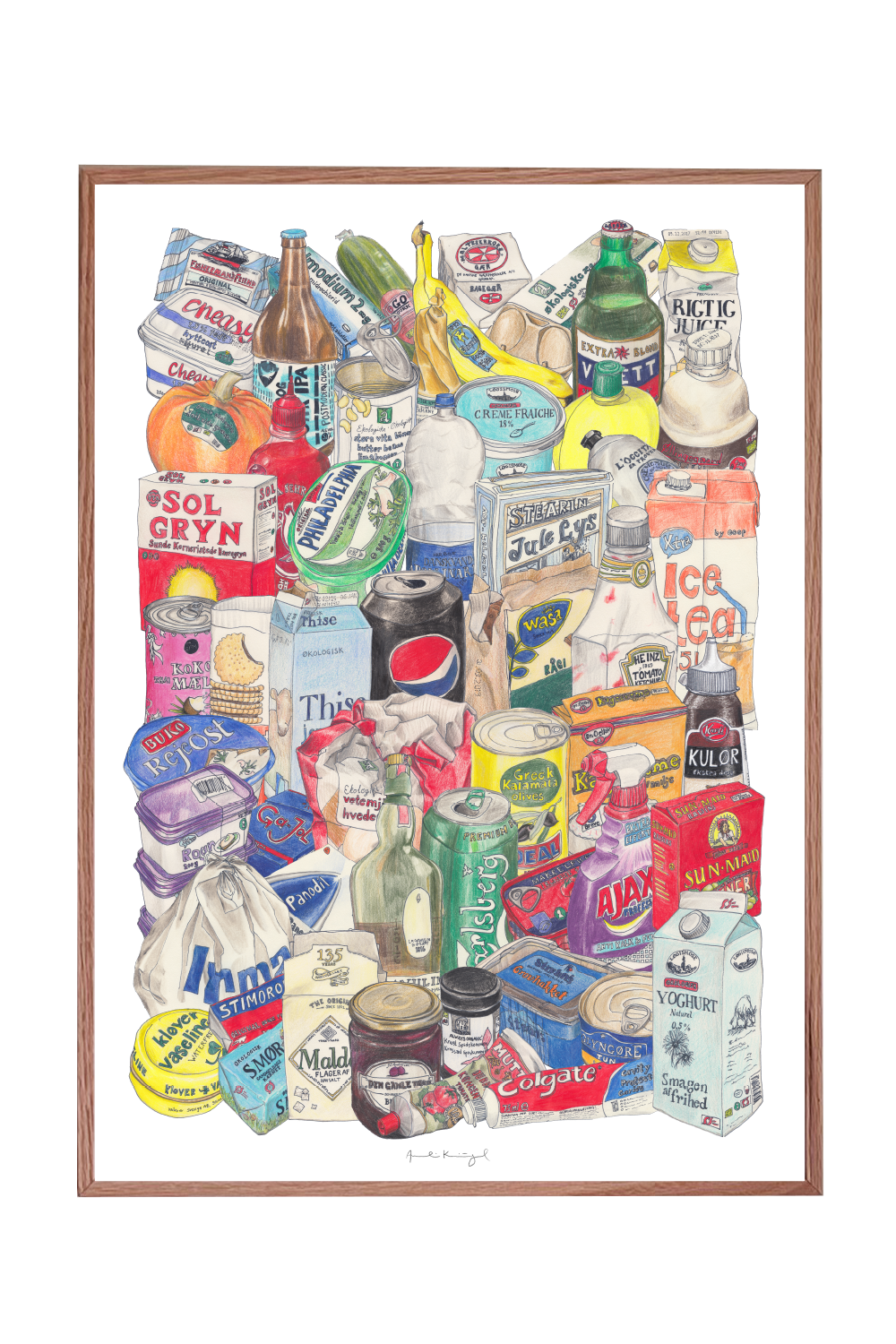 - Supermarked plakaten er tegnet med tusch og farveblyant. hver produkt er tegnet alene og sat sammen digitalt til supermarked. Det er den perfekte køkkenplakat hvis man trænger til en masse farve og sjovt snakke. Hvert produkt findes også som A4.