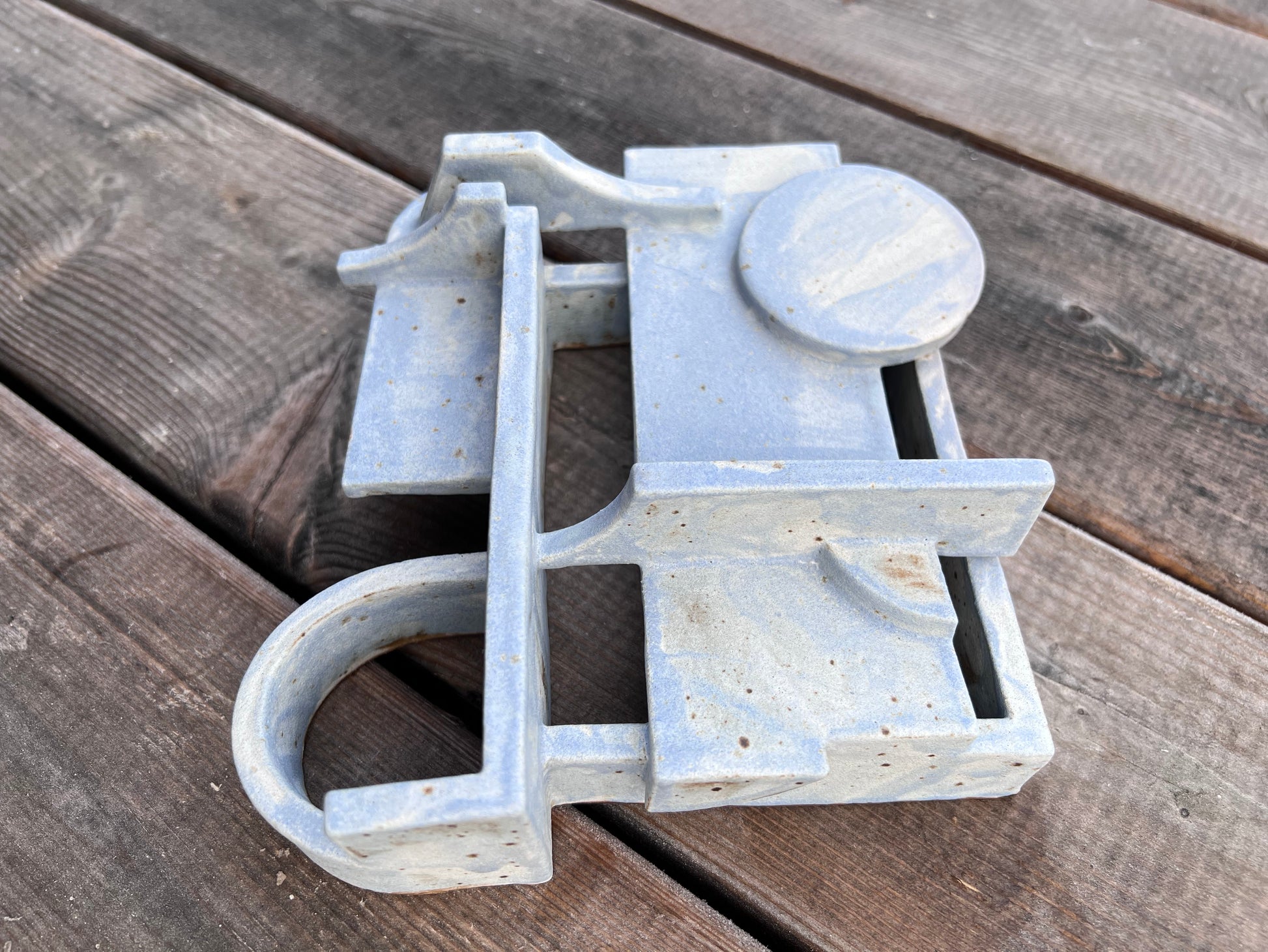 Vægophæng i sart himmelblå nuance udført i stentøj.