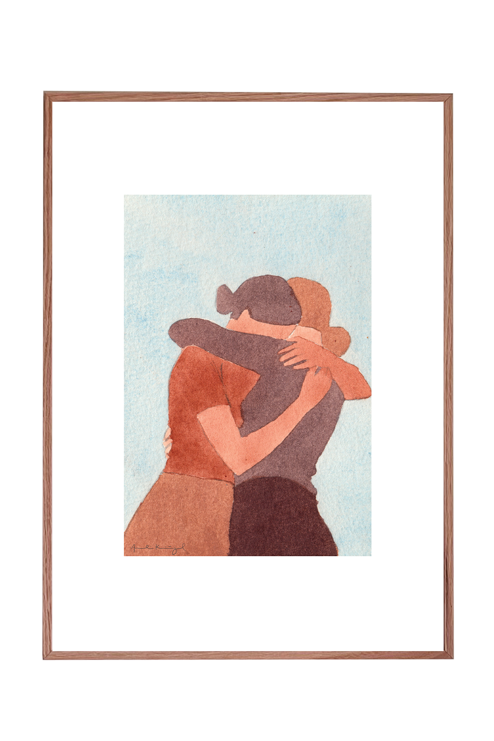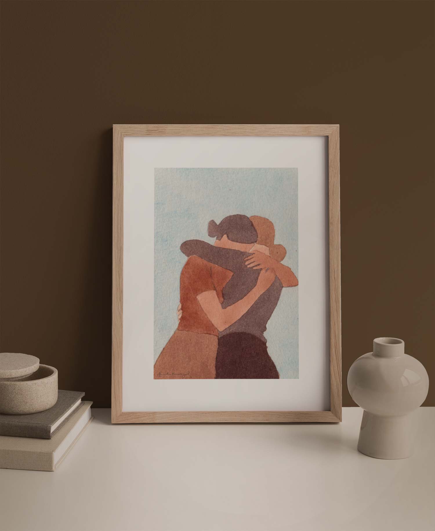 Venskab er malet med akvarel på papir. motivet er malet i jordfarver med botanisk blæk og akvarel.
